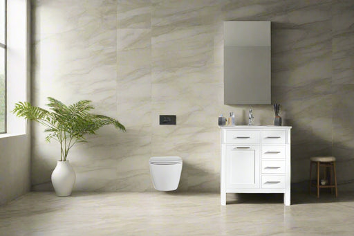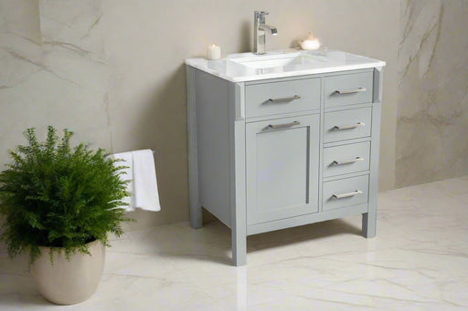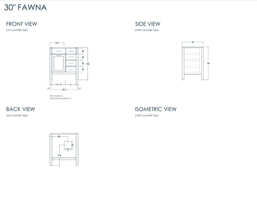 View full detailsSize 34"H x 30"W x 22"D Cashmere or Pure White Quartz Top Options Undermount Porcelain Sink Legs and Drawers are Solid Wood, Frame and Door HDF to ...