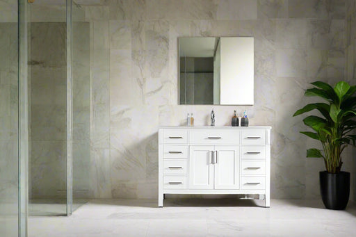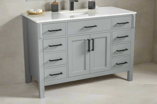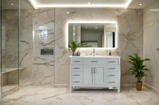 View full detailsSize 34"H x 48"W x 22"D Cashmere or Pure White Quartz Top Options Undermount Porcelain Sink Legs and Drawers are Solid Wood, Frame, and Doors HDF t...