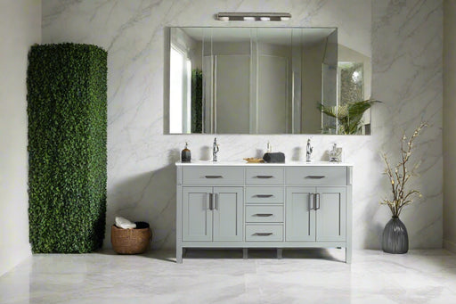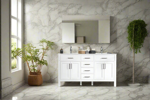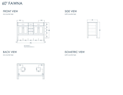 View full detailsSize 34"H x 60"W x 22"D Cashmere or Pure White Quartz Top Options Undermount Porcelain Sink Legs and Drawers are Solid Wood, Frame, and Doors HDF t...