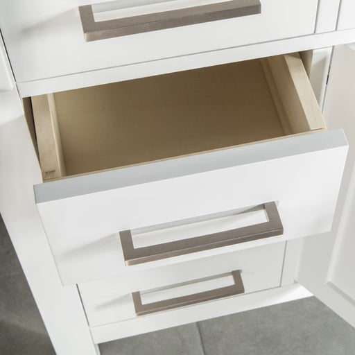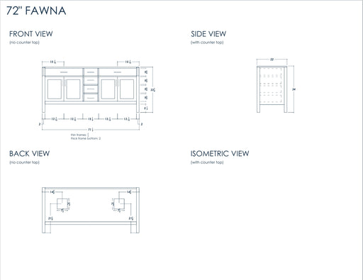 Size 34"H x 72"W x 22"D Cashmere or Pure White Quartz Top Options Undermount Porcelain Sink Legs and Drawers are Solid Wood, Frame, and Doors HDF t...